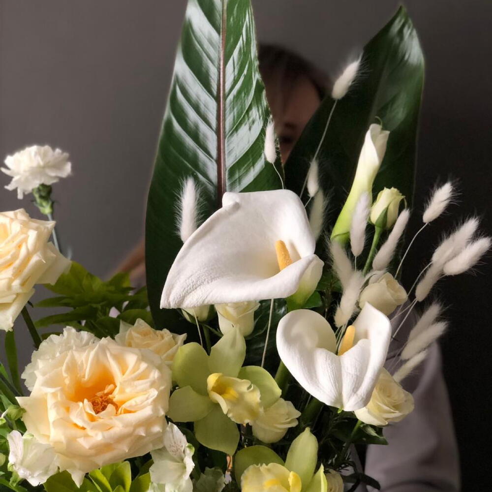 Изысканная, дизайнерская композиция с эксклюзивными цветами.